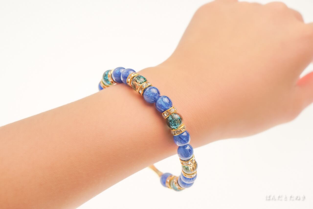 光をまとった星々がキラキラと輝く、夜空の星降る夜にインスパイアされた18cmのブルー色ブレスレット。輝きを放つ石とシルバーのチャームが、あなたの腕元を華やかに彩ります。このブレスレットを身に着けることで、星座や宇宙の神秘的なエネルギーを感じ、幸運を引き寄せるような気持ちになるでしょう。夜空の神秘を身近に感じられるブレスレットは、あなたのコーディネートに幻想的な魅力を与えてくれます。